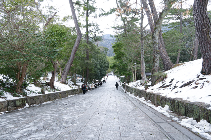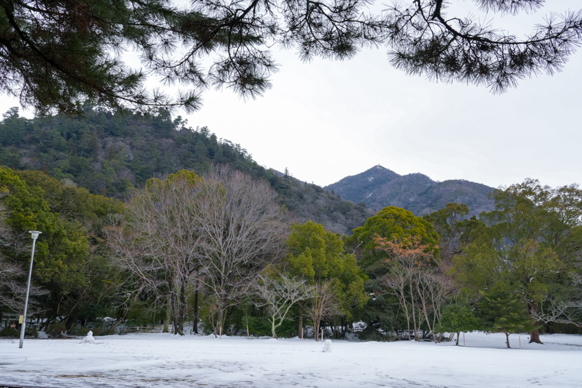 After arriving in Izumo, I left my luggage at my hotel near Izumo City Station. Then I headed toward Izumo Taisha by bus. Outside the window, the world was completely white. It was quiet and soft, so beautiful that it took my breath away.