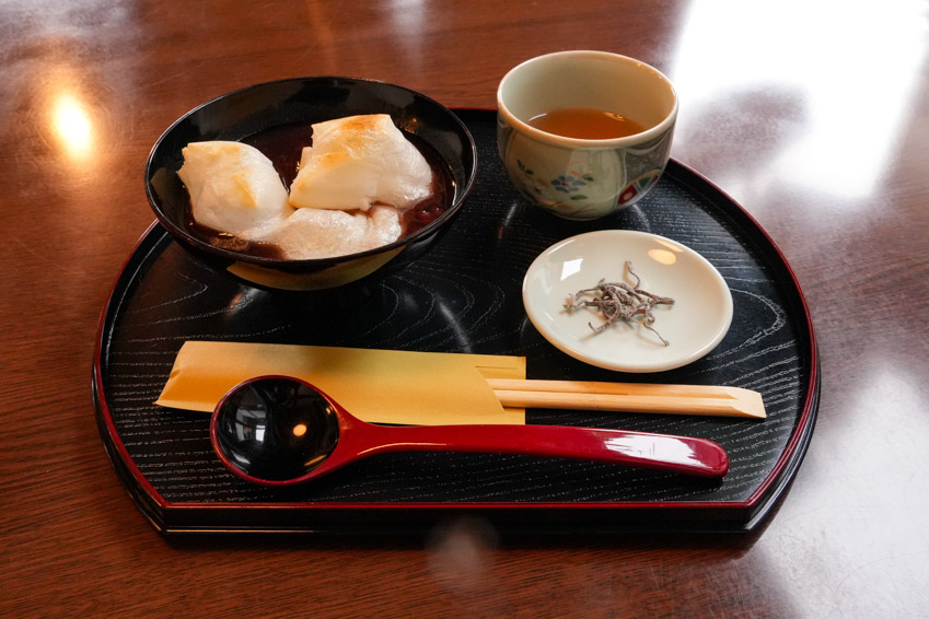 Feeling a little frustrated, I decided to take a short break. I found a retro café along the approach and went inside. I ordered Izumo’s famous zenzai, sweet red beans with grilled mochi.